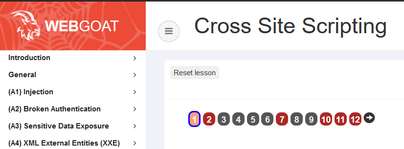 %3Cscript%3Ealert%280%29%3C%2Fscript%3E - URL Inyección: /WebGoat/start.mvc#test/